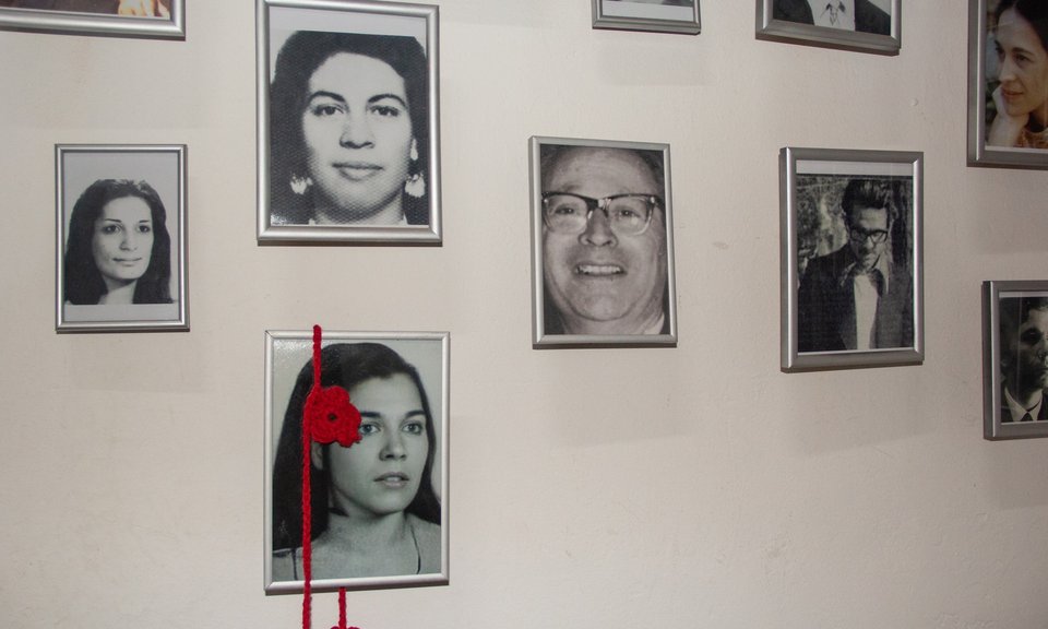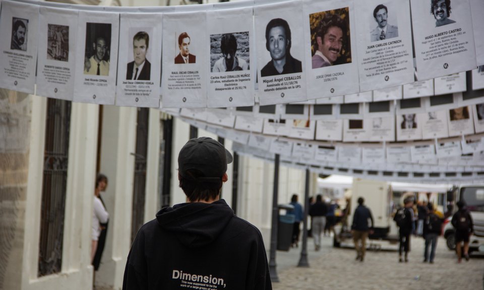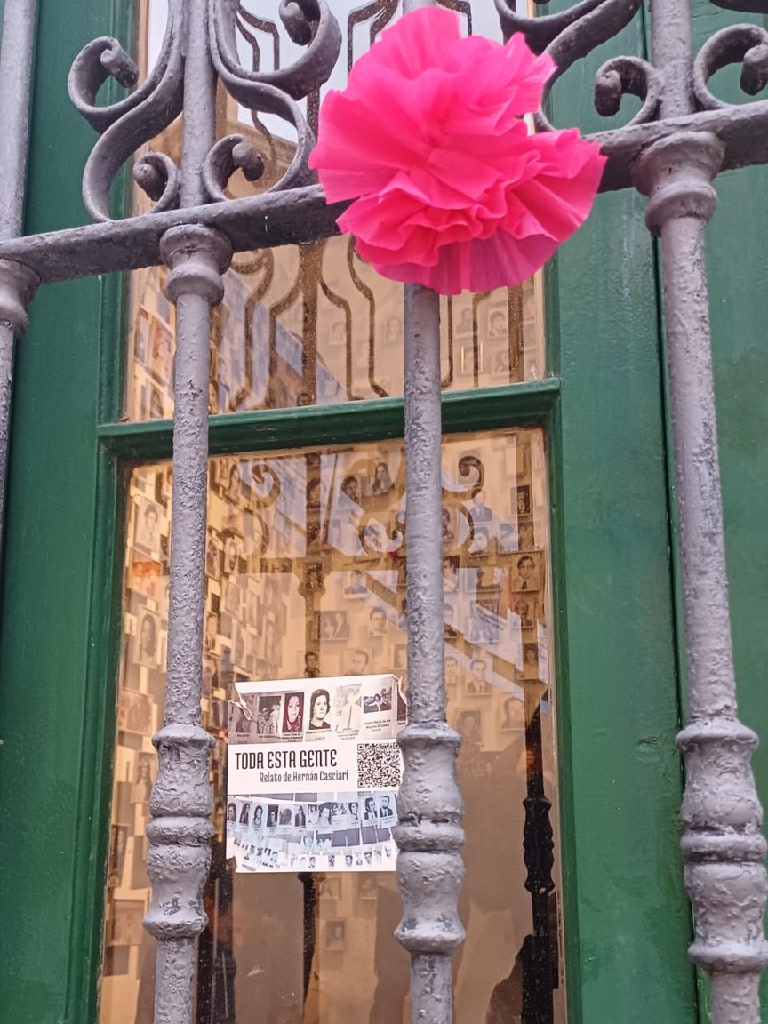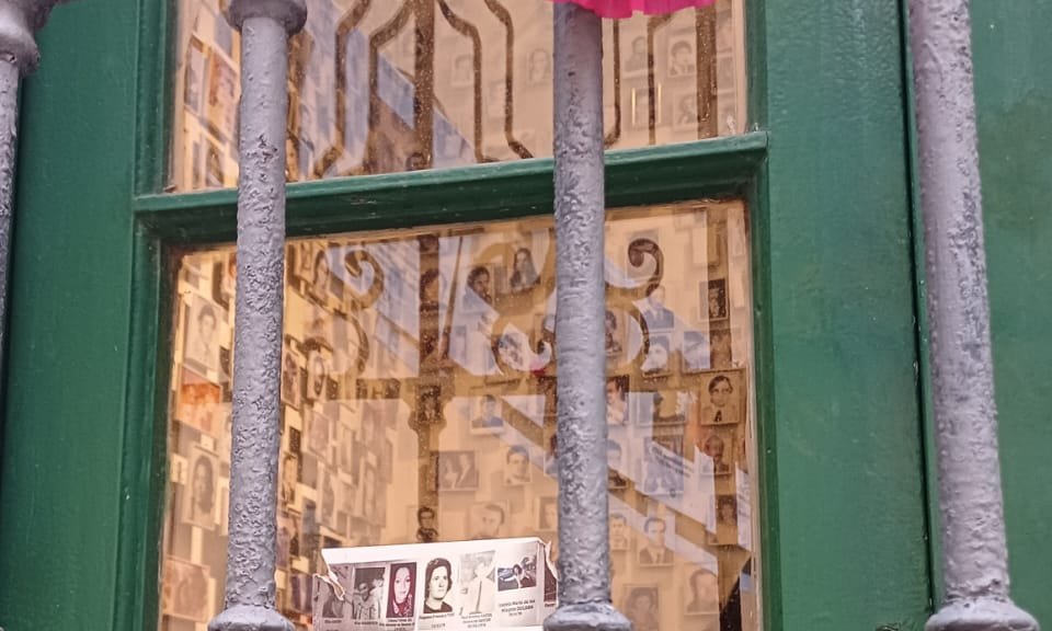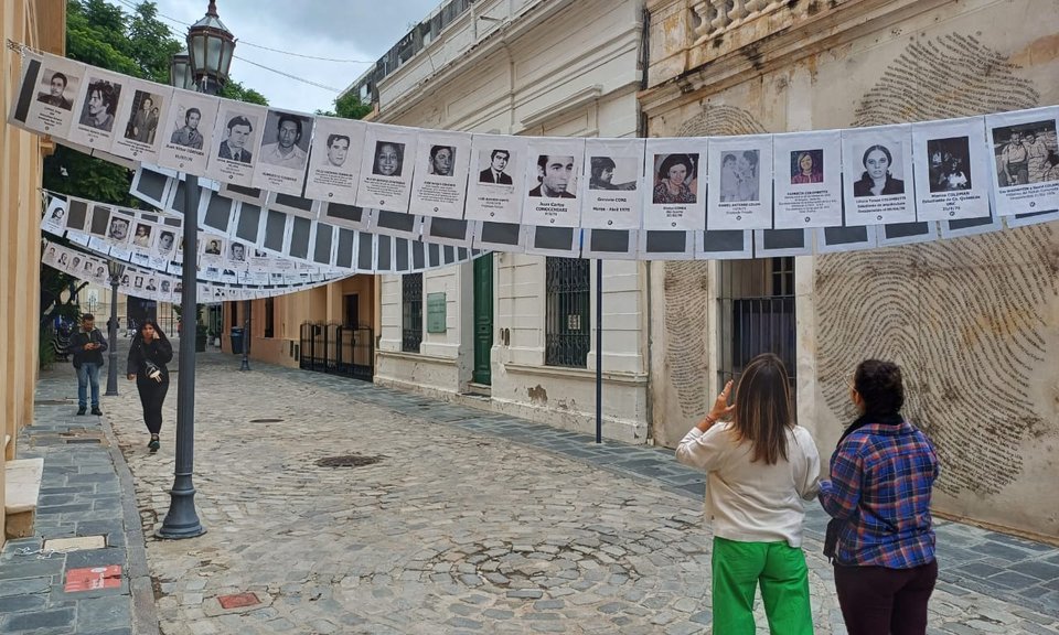 Iniciamos la Semana de la Memoria colgando las fotos de hombres y mujeres desaparecidos y asesinados por el terrorismo de Estado en él pasaje Santa Catalina. Intervención Urbana que acompaña la histórica Ronda de familiares que se realiza en la plaza San Martín, y los recorridos pedagógicos que inician en el Pasaje, frente al memorial a los desaparecidos y asesinados, para dar cuenta de lo visible y urbano del ex CCD. Las fotos de los desaparecidos que, de punta a punta se despliegan sobre del pasaje Santa Catalina, funcionan como lugar de encuentro para los familiares y amigos, a la vez que interpelan y convocan a todos aquellos que circulan y transitan por él.