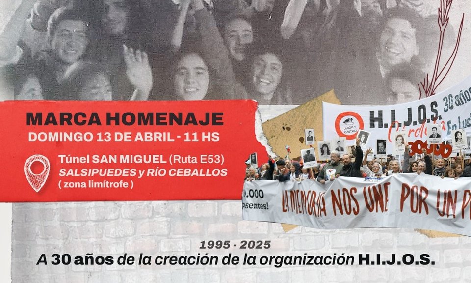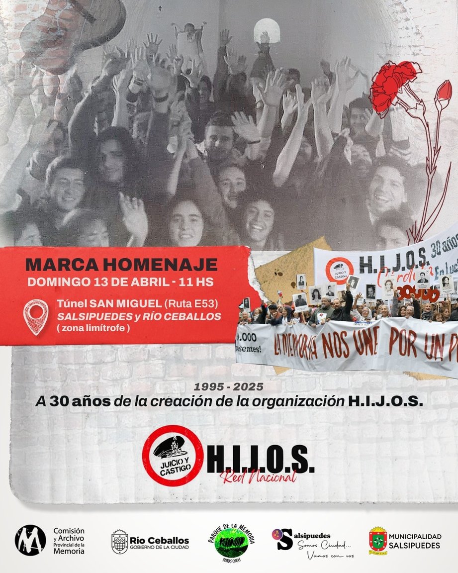 En conmemoración por los 30 años de la creación de la organización H.I.J.O.S el Parque de la Memoria Parque de la Memoria Sierras Chicas, la Municipalidad de Salsipuedes junto a los Espacios de Memorias de Córdoba, señalizaron el ingreso al Túnel San Miguel, en el límite interjurisdiccional entre Salsipuedes y Río Ceballos. H.I.J.O.S. Córdoba forma parte de la Comisión Provincial de la Memoria Córdoba y ha participado activamente en la lucha y construcción de las políticas Públicas de Memoria.