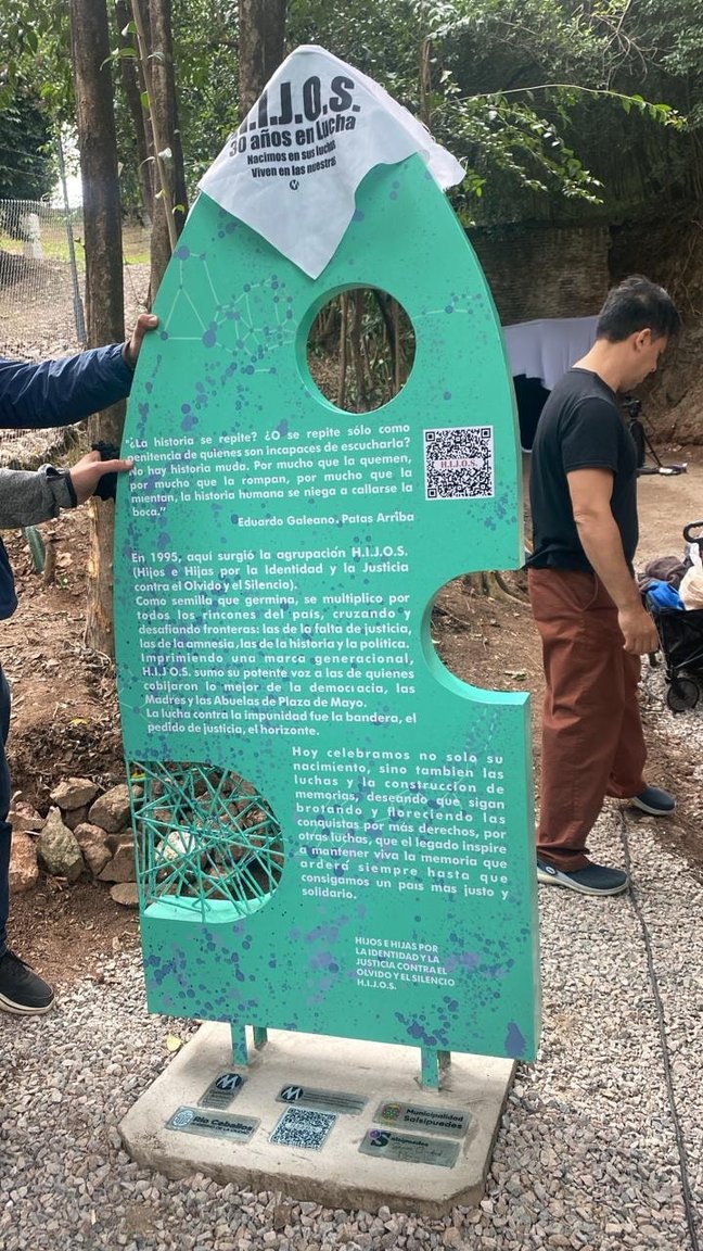 La marca de memoria, realizada por el artista Marcos Sánchez, reseña brevemente la historia de la agrupación y del Complejo San Miguel y un código QR con una Carta Abierta a la Sociedad como sintesís de estos 30 años de lucha.