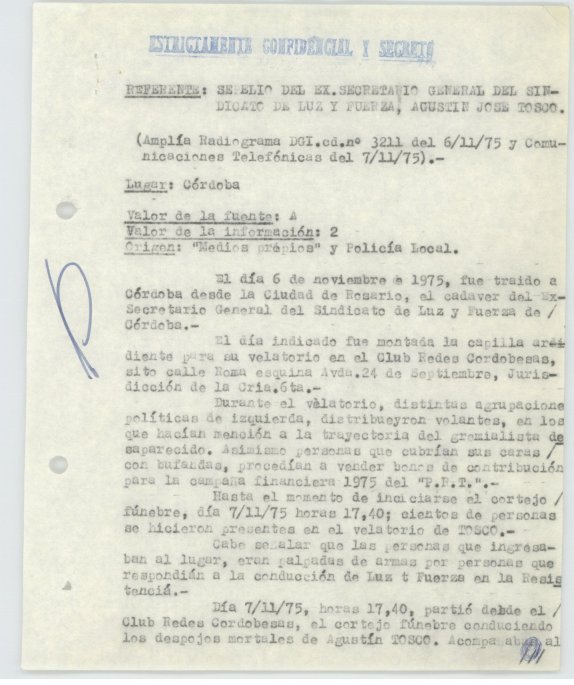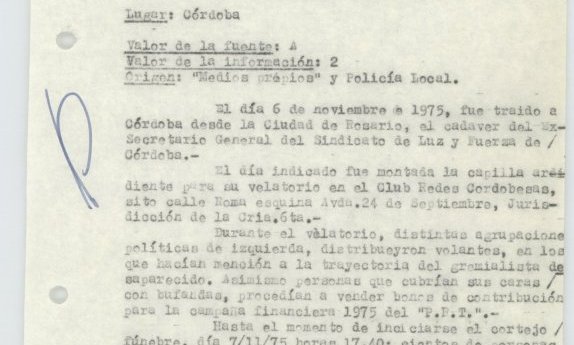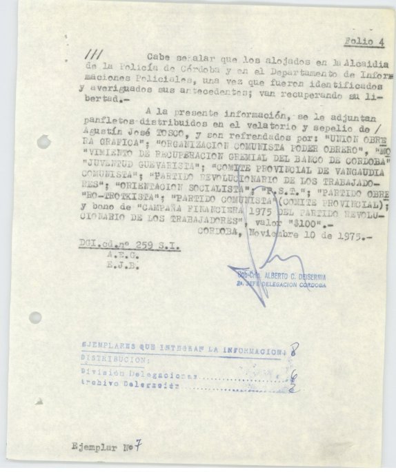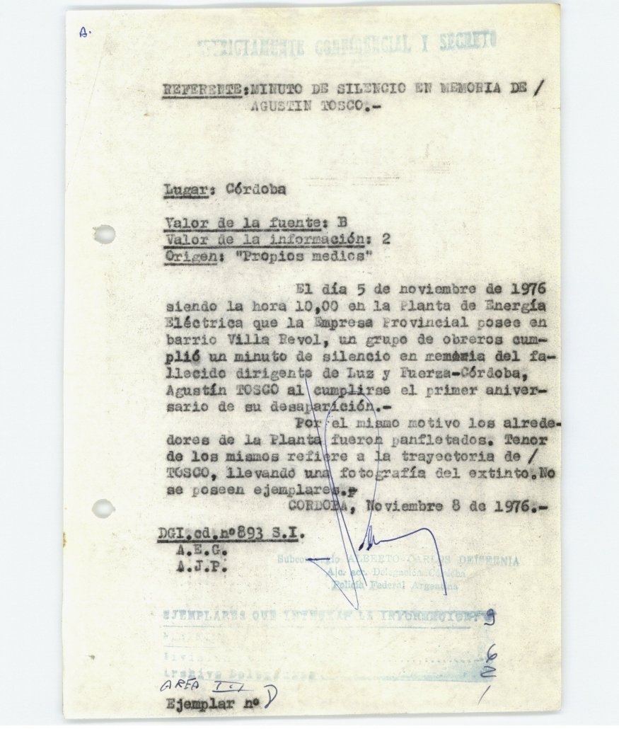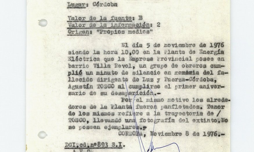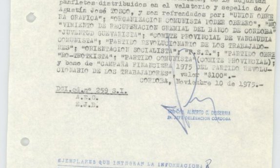 En esta oportunidad liberamos documentos producidos por la Policía Federal Delegación Córdoba denominados “Memorandums”. Estas series dan cuenta de las prácticas de vigilancia por parte del Estado hacia referentes sociales, militantes políticos, organizaciones sindicales y la sociedad civil. Estos documentos y sus lecturas al calor de un nuevo tiempo y enmarcados en polìticas públicas de memoria, también visibilizan los caminos de las resistencias, dan a conocer la importancia de recorridos colectivos a través de proclamas donde la sociedad cordobesa conmemoró y actualizó las trayectorias de quienes nunca desoyeron la voluntad popular.