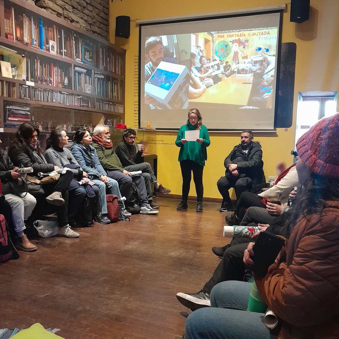 La Vicky Rozza, docente, artista, titiritera, militante, ex presa y exiliada política, juntó todos sus pedazos en la pos dictadura, armó su rompecabezas y convocó a lxs HIJOS, a lxs militantes, a lxs docentes, a lxs contadores de cuentos, a lxs ex presos, a las Abuelas y madres para pensar como trasmitir el horror vivido a todas las generaciones que siguieron.
