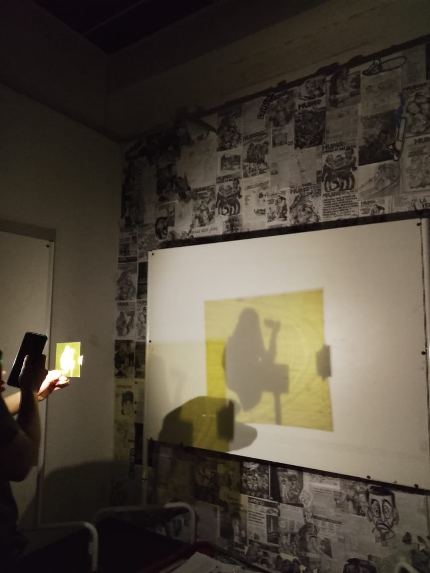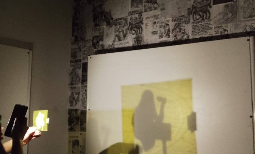 Técnica: Montaje de proyección lumínica con elementos sonoros.