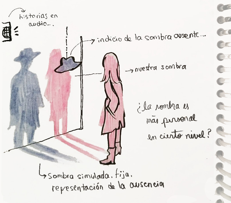 La instalación busca generar una atmósfera envolvente, en un ambiente íntimo, en el cual el espectador pueda recorrer el espacio e interactuar con las sombras proyectadas y los relatos sonoros que las acompañan. Se realiza a través del juego de luces y sombras, jugando con la idea de la silueta y la presencia corporal, tanto de los espectadores como las proyecciones, junto a los relatos sonoros. Hay una exploración de lo indicial a partir de esos rastros personales, tanto físicos como simbólicos.