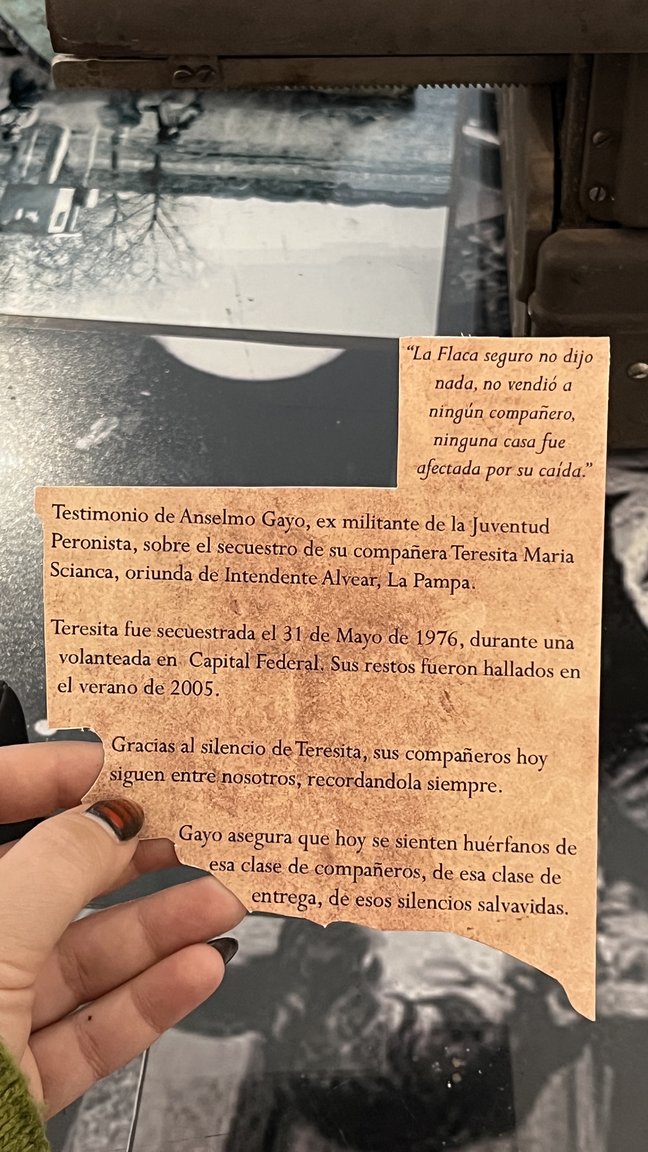 Lugar: Salas Ellas, Ustedes, Nosotres; Galpón de automotores; Sala Represores; Sala Pequeñas y grandes rebeldías; Memorial presentes.
