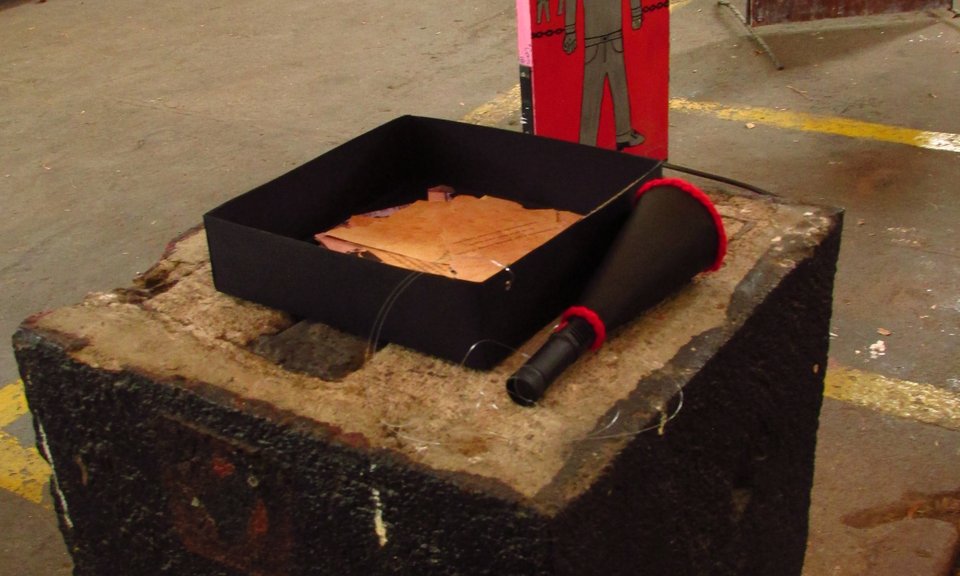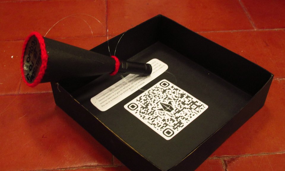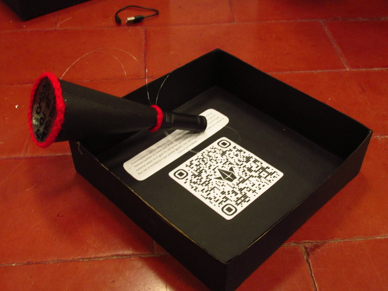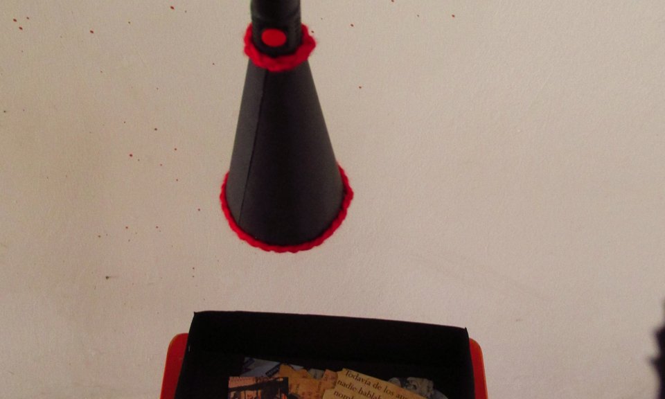 Dimensiones: Medidas variables de la instalación. Objetos: Caja de 20 cm3 y linternas de 12 cm.