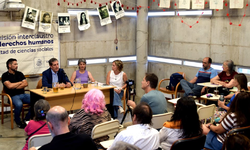 El panel también estaba integrado por Sebastián Soulier (Familiares querellantes), Miguel Ceballos ( Sec. DD. HH. del Juzgado Federal 3) y moderado por Liliana Córdoba, Vicedecana de la Facultad de Ciencias Sociales.